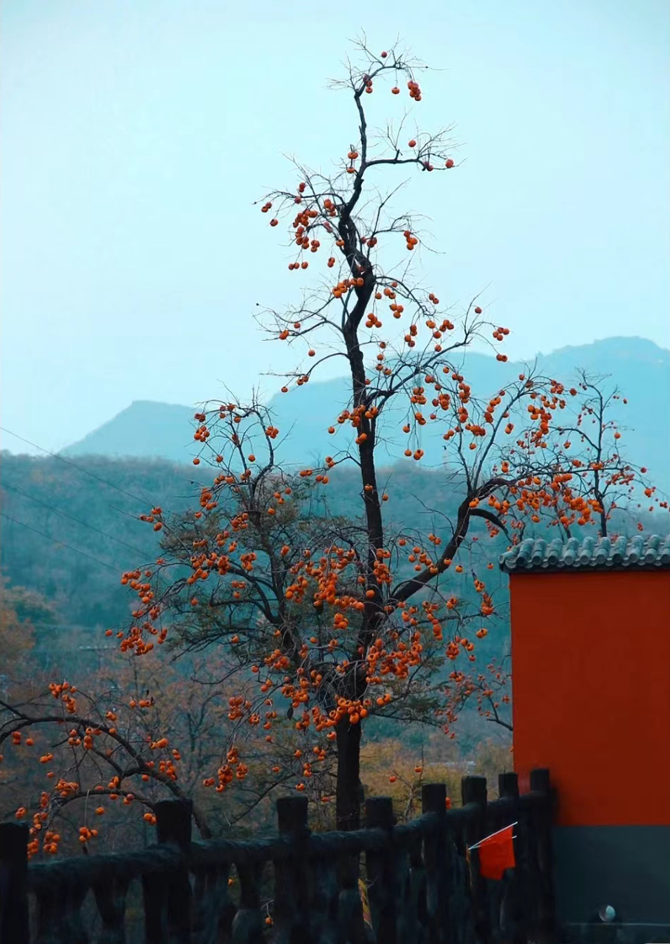 村里现存一些白墙灰瓦的老屋,在橙红的秋柿映衬下显得格外沧桑古朴